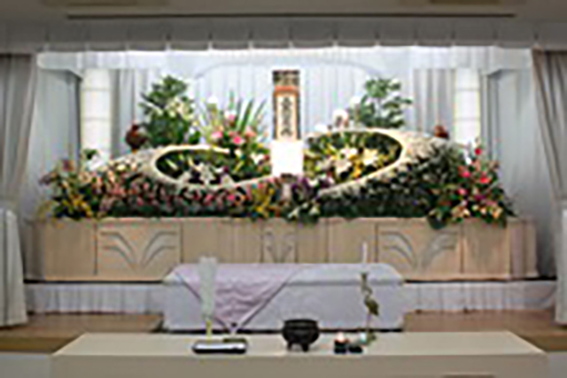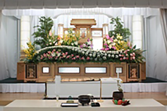 花いっぱい花祭壇プラン(料理代および宗教者へのお布施は含んでいません)