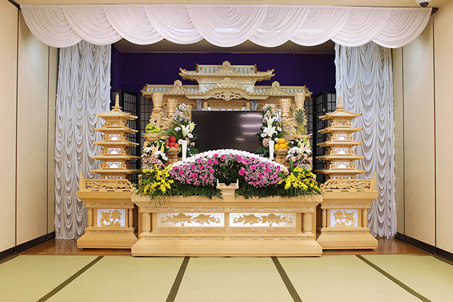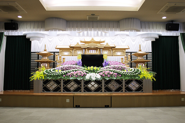 ・広い式場を区切った使用もでき、少人数の家族葬から一般葬・社葬も対応