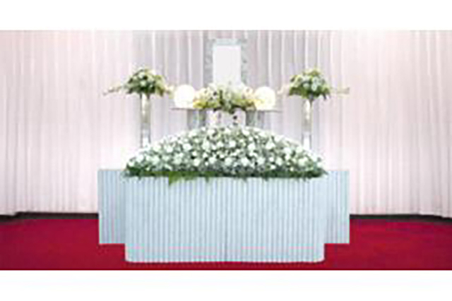 (税込388,000円~)通夜は行わずに、告別式一日だけでお送りする、費用を抑えた花祭壇のプランです。